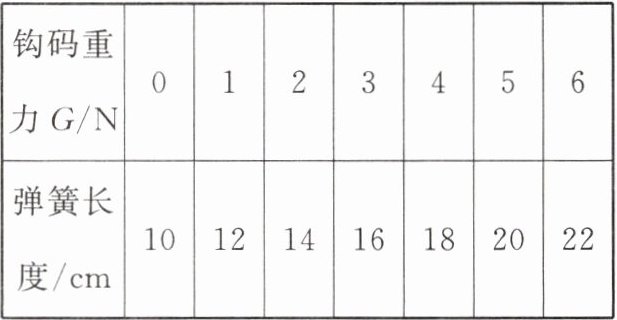 |钩码重力G/N|0|1|2|3|4|5|6|