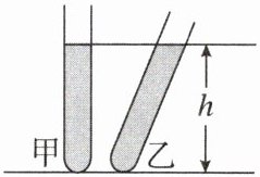 6. 如图所示,甲、乙两支完全相同的试管内装有质量相等的不同液体,甲试管竖直放置,乙试管倾斜放置,两试管内液面相平。设液体对试管底部的压强分别为$p_{甲}和p_{乙}$,则下列判断正确的是( )