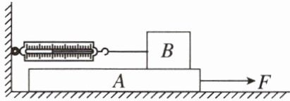 【例3】如图所示,在15 N的水平拉力F的作用下,木板A在水平地面上匀速向右运动,同时,物块B相对于地面静止,此时弹簧测力计的示数为3 N,则木板A受到地面所施加的摩擦力大小为( )