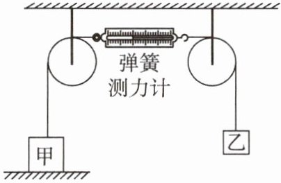 变式 如图所示,物体甲和乙通过细绳与弹簧测力计连接在一起。甲(重10 N)放在地面上;乙(重5 N)被吊在空中,它们均保持静止。不计弹簧测力计及细绳的重力,也不计细绳与滑轮间的摩擦力。下列叙述正确的是 ( )