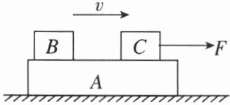 变式 如图所示,物体A、B、C叠放在水平桌面上,水平力F作用于物体C上,使A、B、C以共同速度向右匀速运动。下列关于物体受几个力的说法正确的是( )
