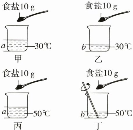10. 研究温度对食盐溶解快慢的影响时,需进行对比实验,下列实验中可选用的是(