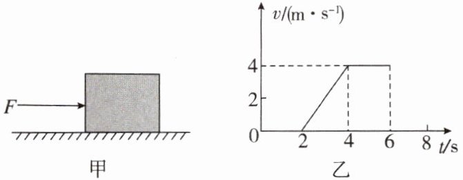 4. 如图甲所示,水平地面上的一个物体受到水平推力F的作用,物体的速度v与时间t的关系如图乙所示。下列说法正确的是( )