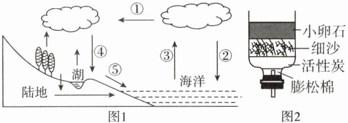 (2)某同学发现最近家里的自来水有点浑浊,就想着自制一个如图2所示的简易净水器。该净化过程中,用到分离混合物的方法有