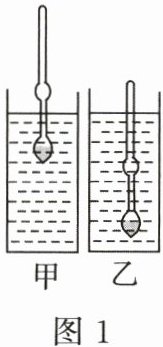 (2)密度计是用来测量液体密度的仪器,测量时漂浮在被测液体中。如图1所示,用同一支密度计分别测量甲、乙两种液体的密度,则密度计在两种液体中受到的浮力大小F甲