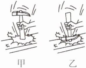 方法二:如图乙所示,手握锤柄,锤头朝下,用锤头撞击地面。