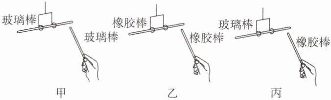 如图丙所示,将上述玻璃棒和橡胶棒相互靠近,观察发生的现象。