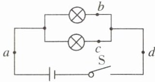 2. 右图所示的电路中,闭合开关S后,比较a、b、c、d四处电流的大小,下列判断正确的是(两个灯泡完全相同)( )