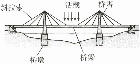 15. 下图所示为斜拉桥简易图。当桥梁中间布满汽车,两端无车时,下列受力分析合理的是(