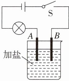 ①实验步骤:用酒精灯加热食盐水溶液,观察灯泡的亮度变化。