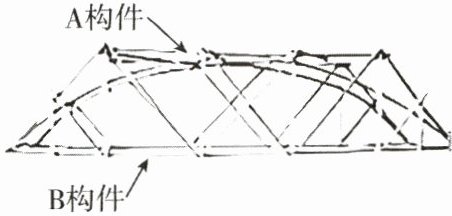 16. 下图所示为小张所设计制作的桥梁模型,在上表面(A构件所在水平面)放置不同重量的长方体铅块进行测试。其间,只有桥梁左右两端搁在准备好的桥墩上。以下对A、B构件受力情况分析,正确的是(