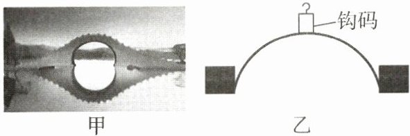 ②在模型上放置一定数量的钩码,直到桥拱恰好被压塌,记录此时钩码的总质量(如图乙所示)。