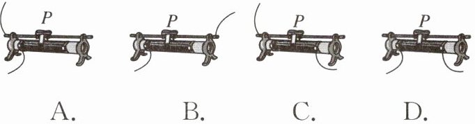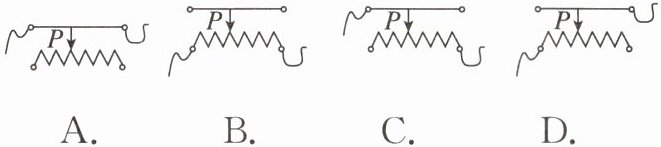 2. 下图所示是滑动变阻器四种接入电路的方式。其中,当滑片P向左滑动时,能使连入电路中的电阻变大的是( )