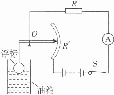 12. 下图是一种自动测定油箱内油面高度的装置,R'是滑动变阻器,它与金属杆的一端接触,从油量表(由电流表改装而成)指针所指的刻度就可以知道油箱内油面的高度。此电路图中电阻R的作用是______,当金属杆的右端上移时,油箱内油面______,电路中的电流______。
