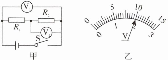 4. 图甲所示的电路,闭合开关S后,两个电压表指针偏转均为图乙所示,则电阻$R_1$和$R_2$两端的电压分别为( )