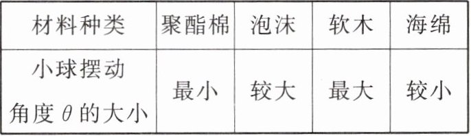 |小球摆动角度θ的大小|最小|较大|最大|较小|