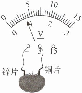 5. 在番茄上相隔一定距离分别插入铜片和锌片,即为番茄电池,将铜片、锌片与电压表相连(如图所示),下列说法正确的是 ( )