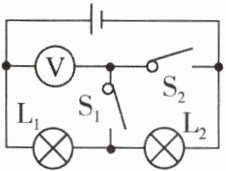 7. 如图所示,当S1闭合、S2断开时,电压表示数为2.5 V;当S1断开、S2闭合时,电压表示数为6 V。灯泡L1两端的电压为______ V,电源电压为______ V。