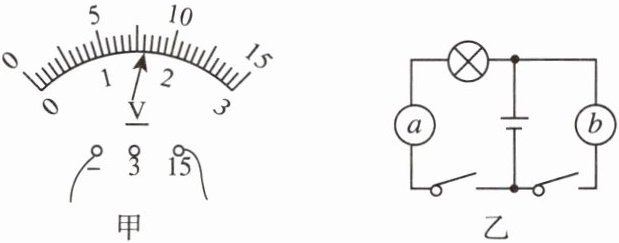 8. (1)图甲所示是______表的表盘,当指针位置如图所示时,示数是______。若把这个表接在图乙电路中使用,应接在______(填“a”或“b”)处。