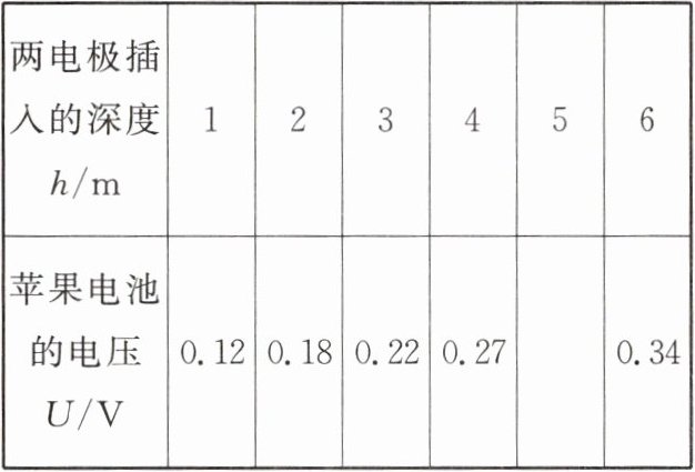 (4)苹果电池的电压大小随电极插入苹果深度的增加而增大