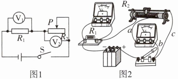 12. (15分)学习小组的同学合作进行探究“串联电路的电压特点”,设计了图1所示电路,并连接了图2所示实物电路。