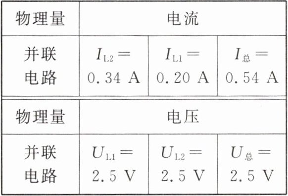| 并联电路 |$ U_1= 2.5 V $|$ U_2= 2.5 V $| Uₐ₌= 2.5 V |