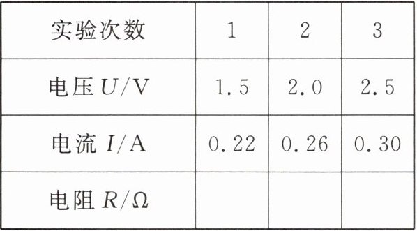 | 电流I/A | 0.22 | 0.26 | 0.30 |