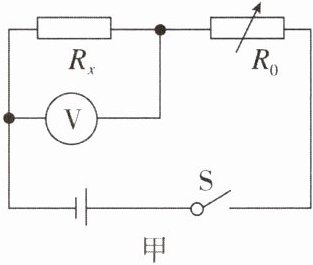 9. 实验室要测量一个阻值为数百欧的电阻Rₓ的阻值,提供的器材有:干电池两节,学生用电压表(量程为0~3V)、滑动变阻器R(100Ω 2A)和电阻箱R₀(0~9999Ω 5A)各一个,开关和若干导线。小李同学提出了自己的设计方案,如图甲所示,并进行了如下实验。