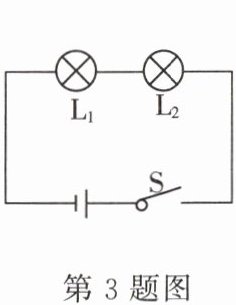 3. 上图所示的电路中,灯泡$L_1、$$L_2$的电阻分别为20 Ω、10 Ω且不变。闭合开关S,通过灯泡$L_1、$$L_2$的电流分别为$I_1、$$I_2;$它们两端的电压分别为$U_1、$$U_2。$下列判断正确的是 ( )