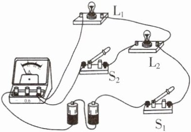 7. 如图所示的电路中,电源电压保持不变,闭合开关$S_1、$$S_2,$两灯都发光。当把开关$S_2$断开时,灯泡$L_1$的亮度及电流表示数变化的情况是 ( )