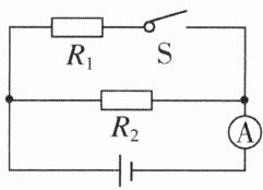 5. 如图所示,电源电压不变,当开关S闭合时,电流表示数是1 A;当开关S断开时,电流表示数是0.6 A,则电阻$R_1$与$R_2$的阻值之比是 ( )
