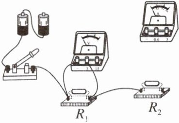 ②用电压表分别测出$R_1、$$R_2$两端电压以及$R_1$和$R_2$两端总电压,并记录在表格中。