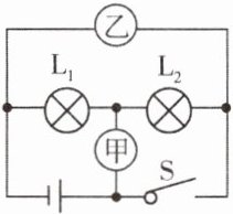 8. 如图所示,电源电压保持不变,开关S闭合后,灯$L_1、$$L_2$都能正常发光,甲、乙两个电表的示数之比是2∶3。此时灯$L_1、$$L_2$的电阻之比是 ( )