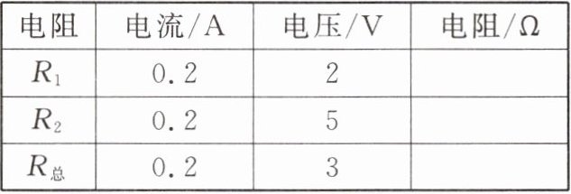 (2)在处理数据时,有同学发现表中的一个数据有误,错误的数据是______;重新测量,根据所测的数据计算$R_1、$$R_2$和R总的值。