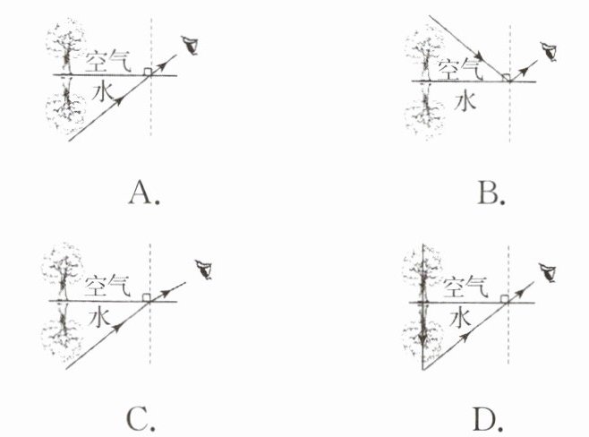 2. 下列是观察对岸的树木在水中倒影的光路图,其中正确的是( )