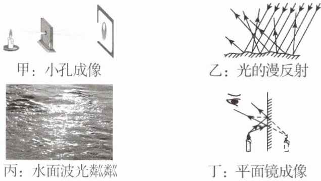C.图丙中,西湖水面波光粼粼,是由于光沿不同方向传播,是光的漫反射现象