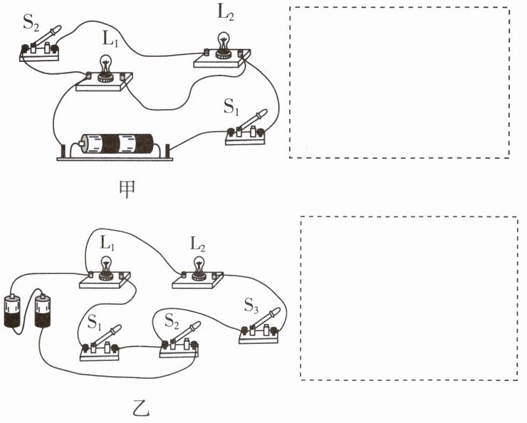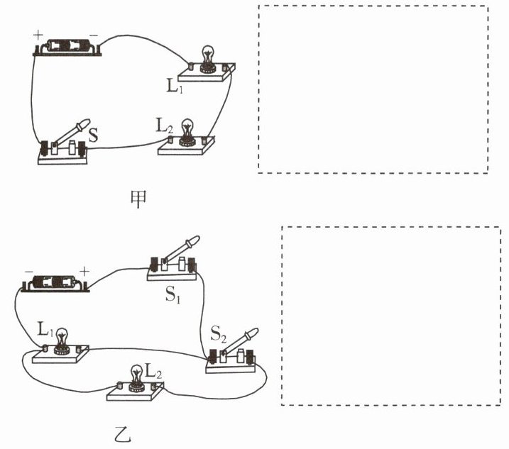 【例1】根据图甲、乙所示实物图,在虚线框内画出它们的电路图。