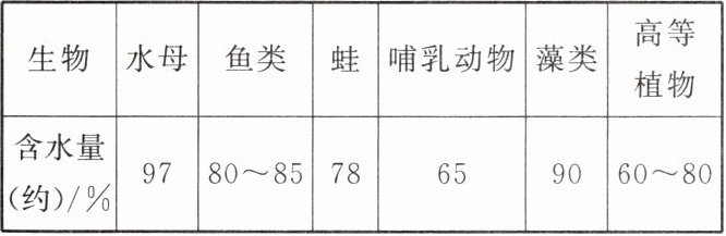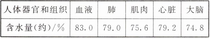 9. 下列两表是一组生物体含水量和人体组织、器官的含水量。从表中数据分析,可得到的结论是( )