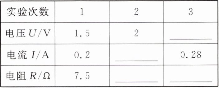 | 实验次数 | 电压U/V | 电流I/A | 电阻R/Ω |