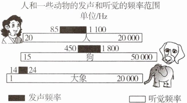 D.因为大象和狗的“发声频率”没有重叠区,所以狗的叫声大象永远也听不见