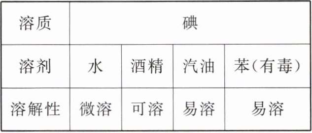 8. 衣服上沾有碘很难洗净,碘在下列四种不同溶剂中的溶解性如表所示: