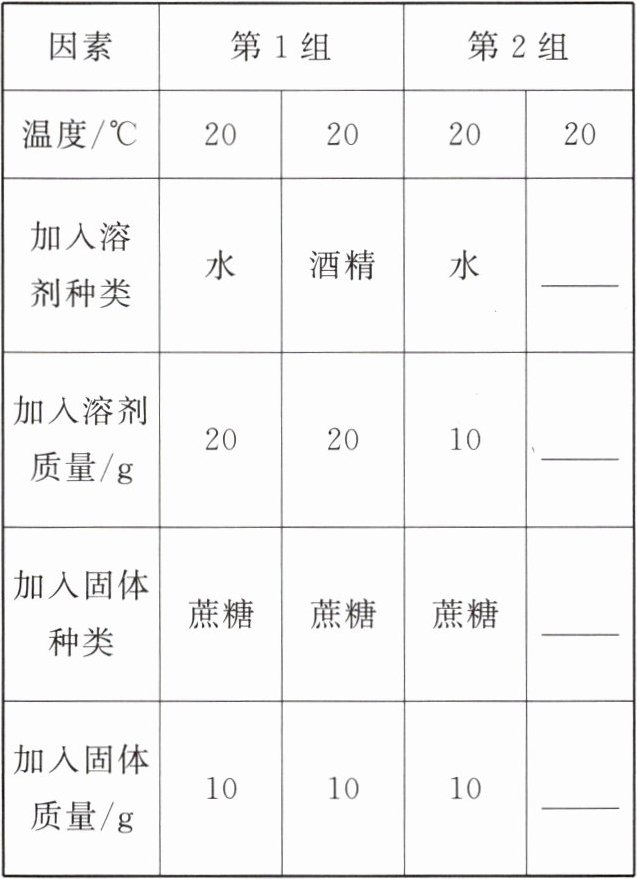 (3)第2组实验中要研究物质的溶解性与物质本身的性质的关系,请将表格内容填写完整。