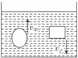 1. 如图所示,甲、乙两物体的体积相等,在液体中分别向上和向下运动,它们此时受到的浮力的大小关系是( )