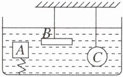 4. 如图所示,A为木块,B为铝片,C为铁球,而且$V_A= V_B= V_C$,把它们都浸没在水中,则它们受到的浮力$F_A$、$F_B$、$F_C$之间的关系正确的是( )