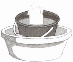 2. 如图所示,将装满水的桶放在脸盆中,用手把饮料罐按入水中,按得越深,人会感到越吃力。针对此现象,下列猜想合理的是( )