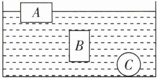 8. 如图所示,A、B体积相同,B、C质量相等,将它们放入水中静止时,A漂浮、B悬浮、C沉底。下列说法错误的是( )