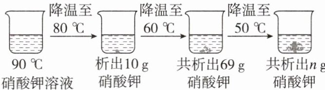 90℃时的硝酸钾溶液是______(填“饱和”或“不饱和”)溶液。图中n的数值为______。