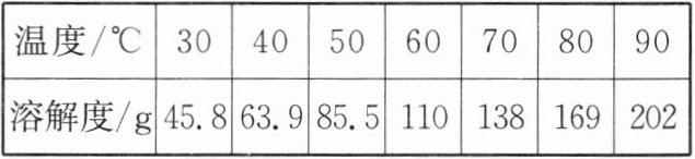 | 溶解度/g | 45.8 | 63.9 | 85.5 | 110 | 138 | 169 | 202 |