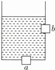 7. 如图所示,容器的底部和侧壁分别有木塞a和木塞b,且a、b在水中的体积相等,则( )