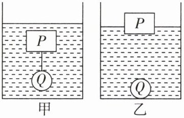 (2)若剪断细线,物块P上浮,金属球Q下沉,待稳定后,物块P漂浮于水面,如图乙所示,求此时物块P露出水面的体积。